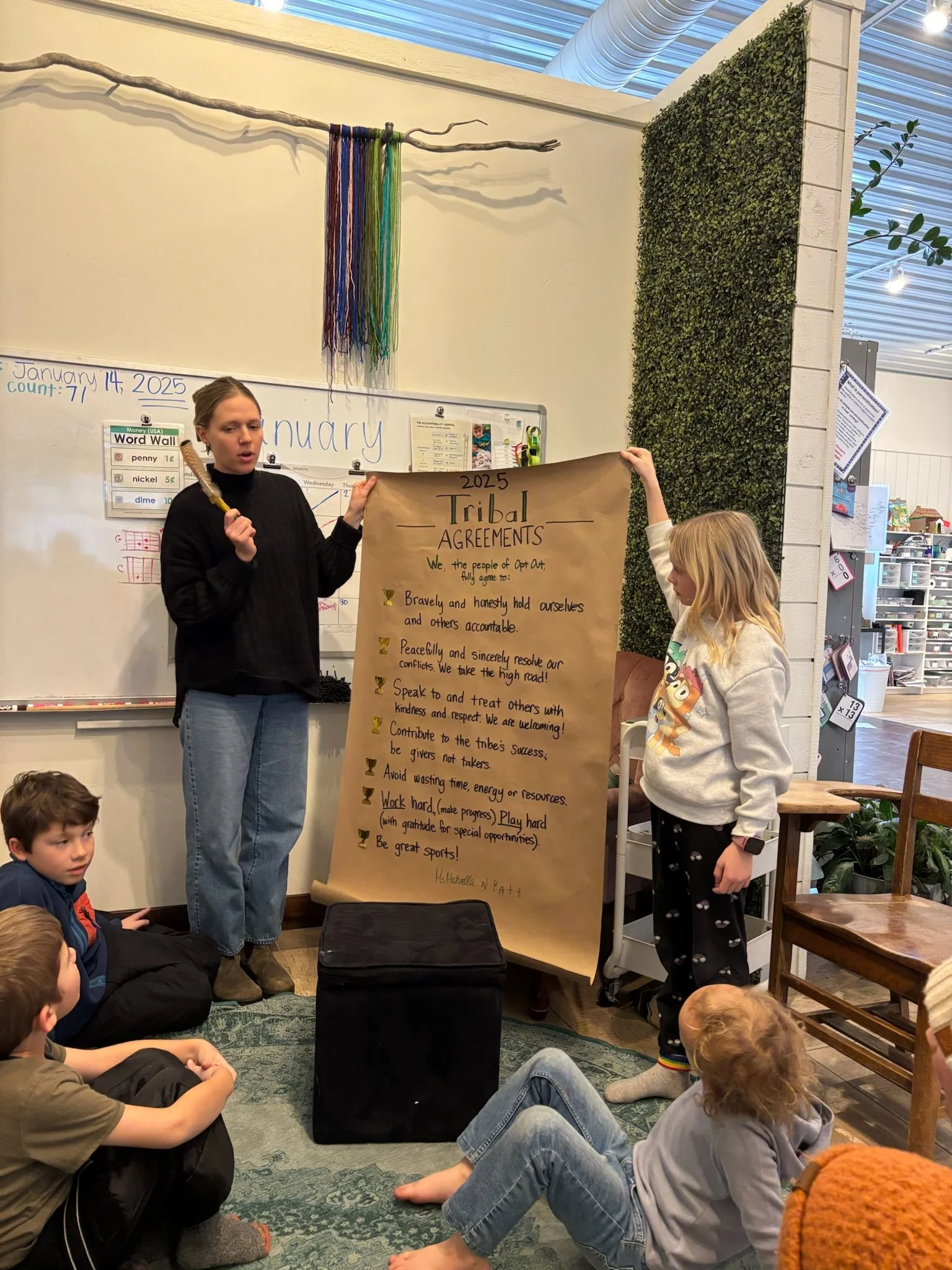 Beyond our school community, the school thrives on collaboration with families, local farms, and Bozeman’s small business community. Parents volunteer as mentors, community experts visit to share their craft, and students regularly take part in service projects that strengthen their sense of belonging and purpose. Through these real-world connections, learning becomes meaningful and memorable.
